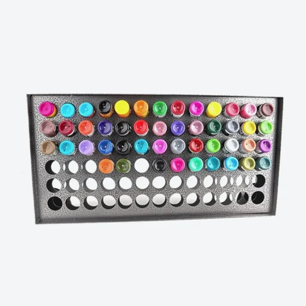 סטנד תלייה ייחודי, עשוי מאלומיניום איכותי ועמיד, המיועד לאחסון וסידור של עד 78 צבעים. הסטנד מספק גישה נוחה לצבעים שלך, שומר על סדר בעמדת העבודה, ומוסיף מראה מקצועי ומאורגן לחלל. מתאים לכל אמני הקעקועים והפירסינג שמחפשים לשדרג את סביבת העבודה שלהם.